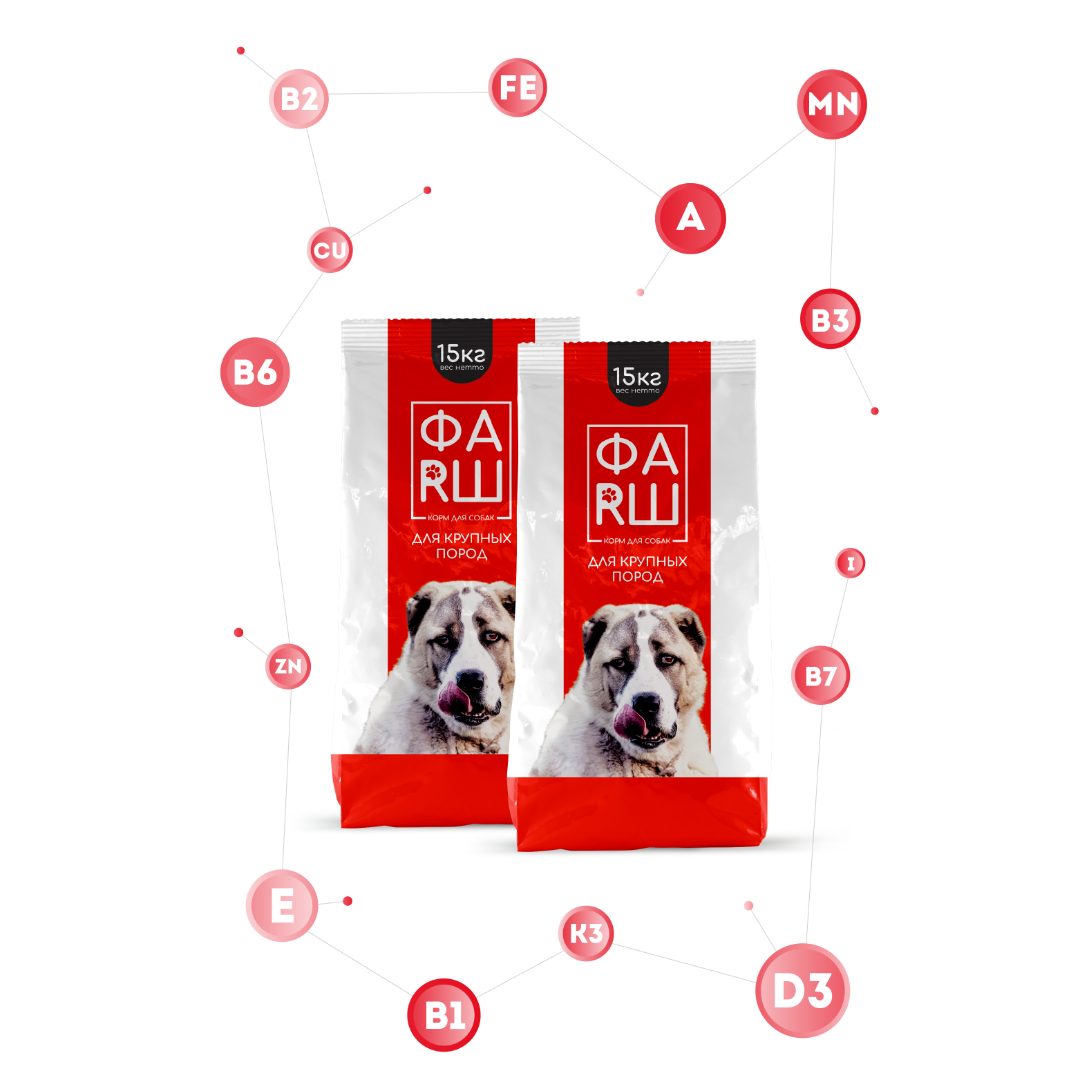 Мука животного происхождения, кукуруза, пшеница, рис, жир животного происхождения, экстракт белка животного происхождения, соль поваренная.
